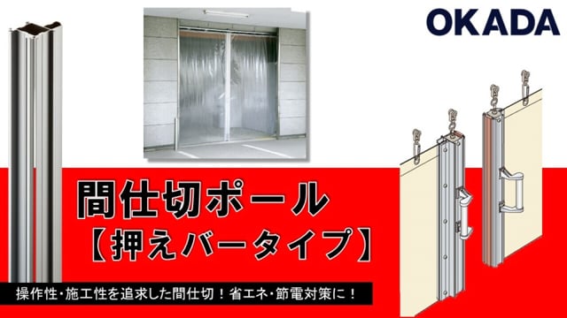 工場、物流センター、公共施設、店舗、住宅外部等、あらゆる場所に使用いただける大型カーテンレールや間仕切ポール。 その他、のれんカーテンや屋外施設の日除け・雨除けに活躍するマルキーゼなど様々な製品の施工方法を動画でご案内。